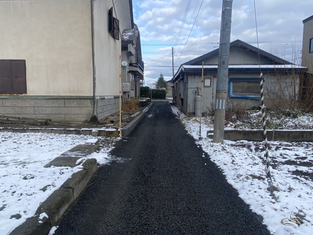 | ・契約不適合責任免責 ・現在空き家あり。建物解体、2区画に分筆して引渡し |