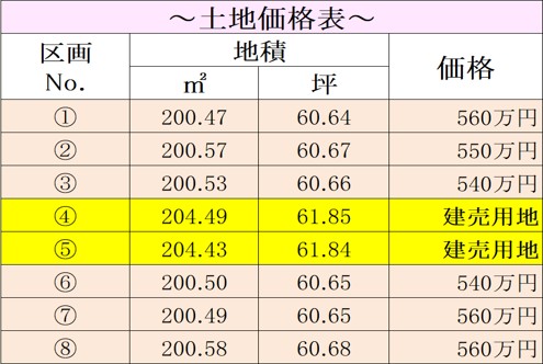 | 201㎡(分筆後予定面積) | 500万円 | ||